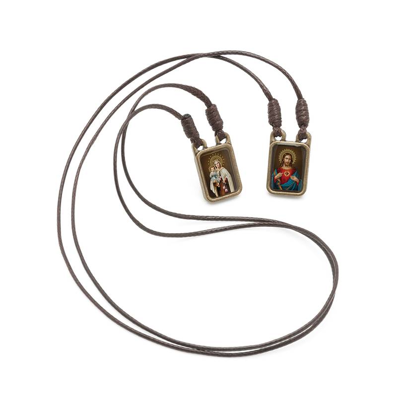 O Escapulário de Nossa Senhora do Carmo consiste em duas pequenas placas ou medalhas penduradas por uma corda: uma é confeccionada em tecido marrom e representa a devoção a Nossa Senhora; a outra é feita de metal e simboliza o compromisso de seguir os ensinamentos cristãos.