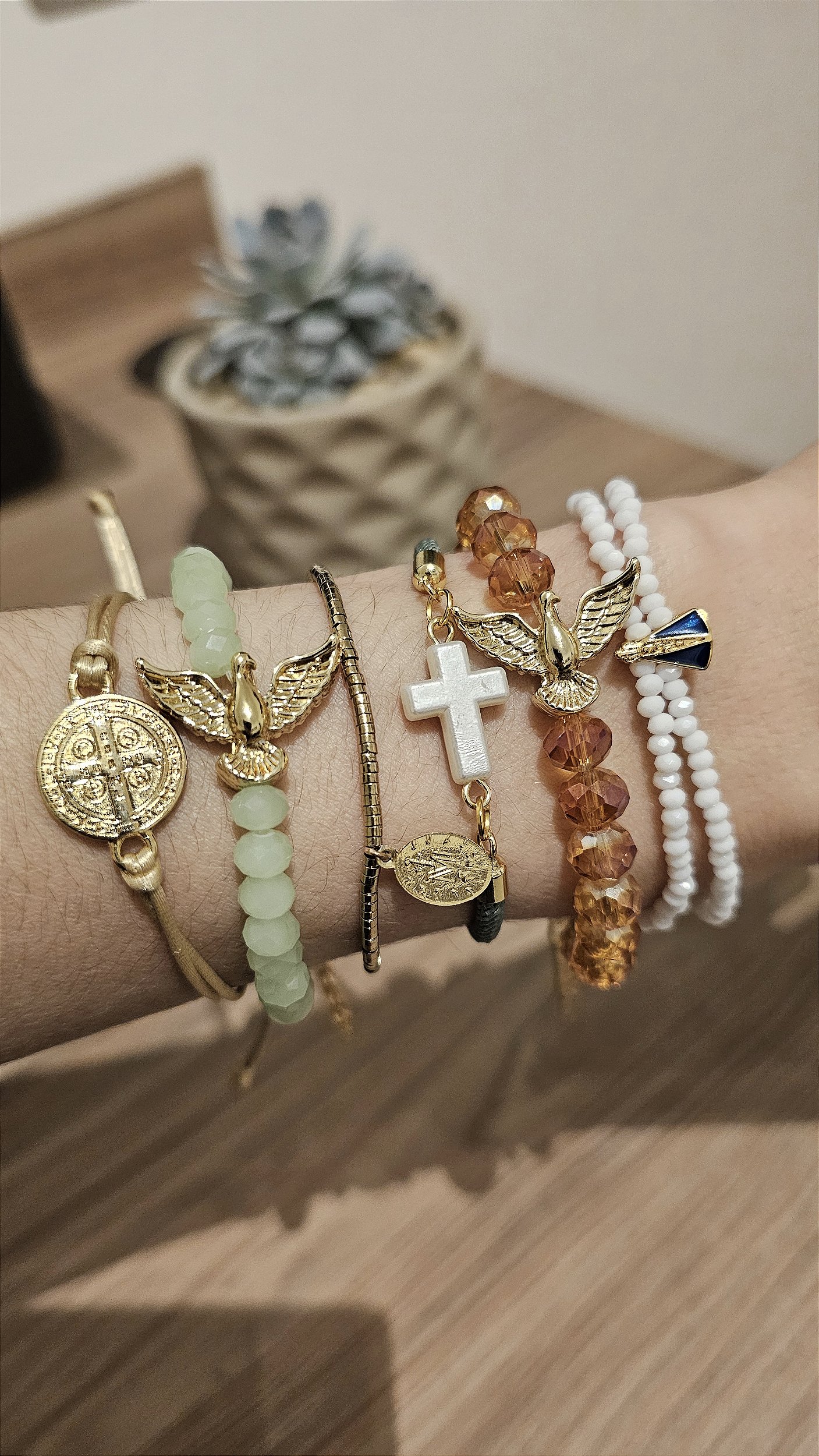Esse lindo kit de pulseiras foi desenvolvido com materiais de alta qualidade pensado para mulher jovem cristã católica.