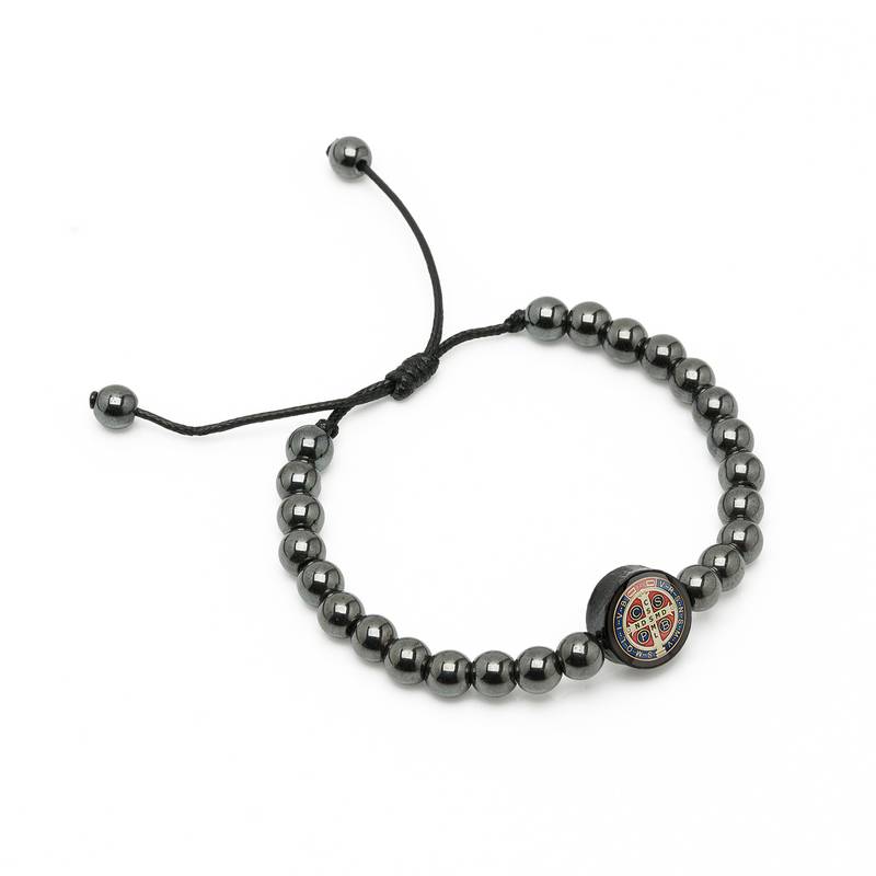 A Pulseira da Medalha São Bento de Hematita 6mm é uma fusão perfeita entre espiritualidade e estilo.